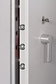 Tür mit Riegelwerk und zertifiziertem Doppelbart-Sicherheitschloß der Klasse A.